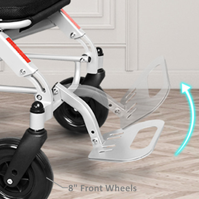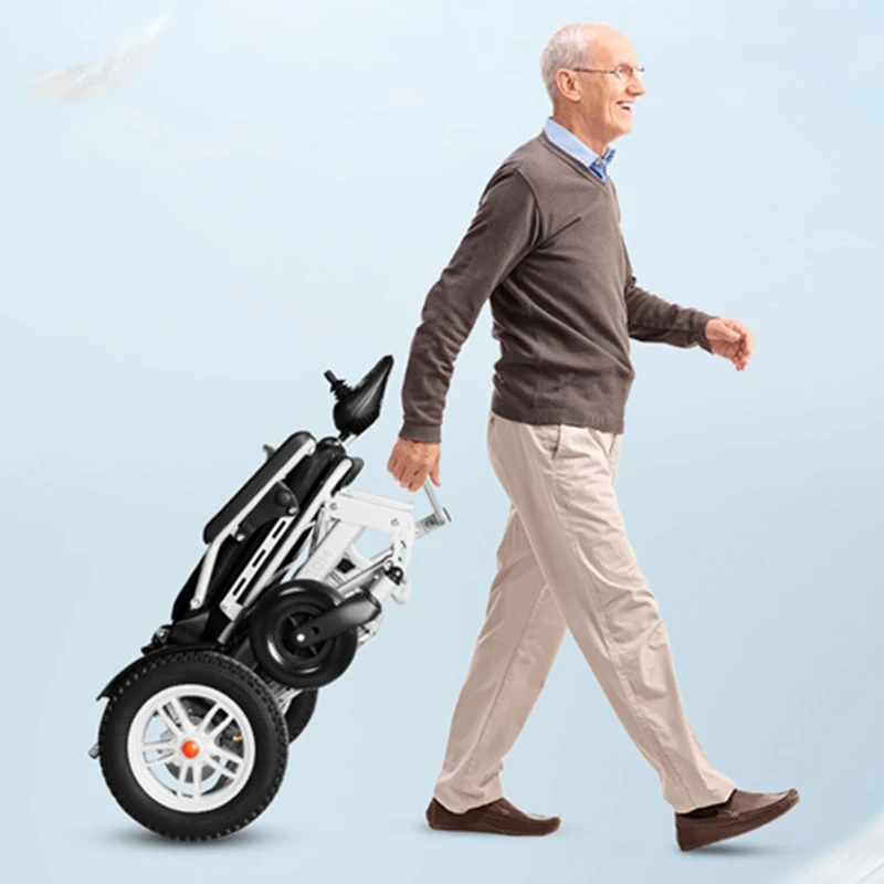 Magnífica silla de ruedas eléctrica plegable de rendimiento sobresaliente y espectaculares posibilidades. Su autonomía es de 20-30 km y está dotada con mando SMART de control progresivo y reducidas dimensiones e intercambiable para diestros y zurdos. Su chasis es de aluminio, lo que le confiere una gran ligereza y resistencia, e incluye amortiguación trasera y delantera para un desplazamiento extremadamente suave, cómodo y silencioso por prácticamente cualquier superficie.